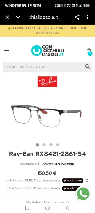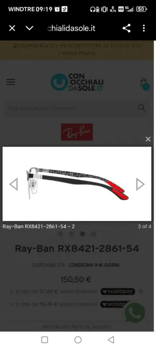 Occhiali da vista Ray-Ban modello RX8421-2861-54. VENDO COME MONTATURA, ORIGINALE NON PRESENTE NESSUN DIFETTO AL MOMENTO MONTA LENTI DA VISTA MA SI POSSONO APPLICARE QUALSIASI TIPO DI LENTI DA SOLE DA VISTA NON PRESENTANO RIGHE O STORTURE. - Montatura da uomo. - Colore nero e argento. - Forma rettangolare.