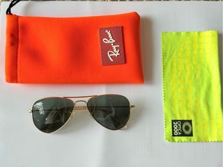 Occhiali da sole Ray-Ban Aviator. Nuovi, valgono 120€. Include custodia protettiva. Altri prodotti che potrebbero interessarti nel mio profilo.