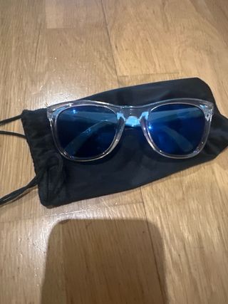 Occhiali da sole per bambini con un design accattivante. Possibile consegna a mano a Zaragoza e Burgos. - Montatura blu. - Lenti con riflessi multicolori.