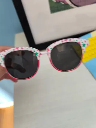 Occhiali da sole per bambini, acquistati in ottica. Design moderno e comodo. - Montatura resistente. - Lenti scure. Ha qualche graffio sul cristallo destro, niente di fastidioso.