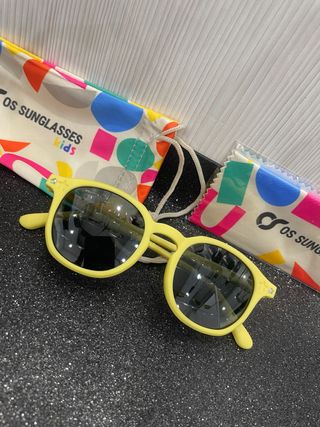 Occhiali da sole per bambini OS Sunglasses. - Montatura gialla. - Lenti scure. - Dettagli a forma di stella sulle aste.