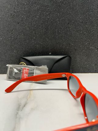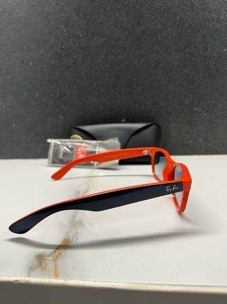 Gafas de sol Ray-Ban para niños, con un diseño moderno y llamativo. - Montura en color naranja vibrante. - Varillas en color negro. - Lentes con protección UV.