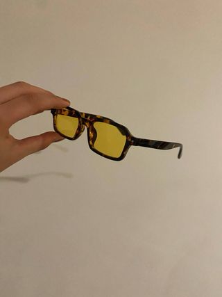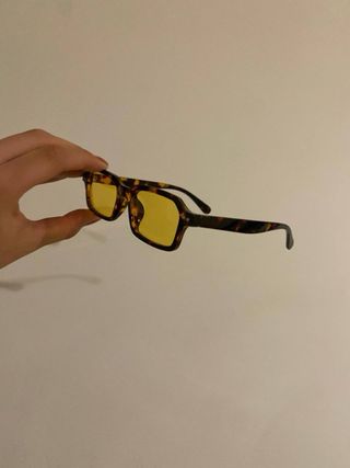 Occhiali da sole con lenti gialle e montatura tartarugata. - Design squadrato. - Stile vintage. - Montatura effetto tartaruga.