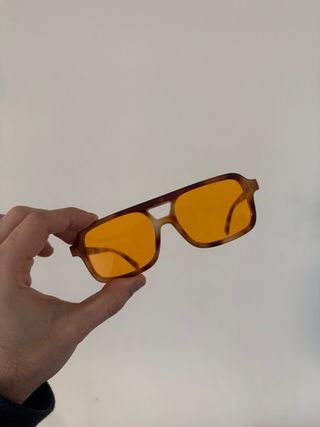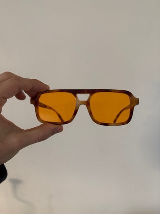 Occhiali da sole con montatura tartarugata e lenti arancioni. - Montatura effetto tartarugato. - Lenti color arancione.