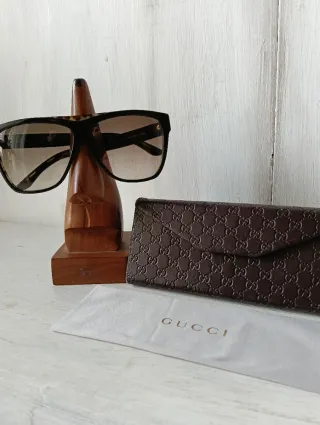 Occhiali da sole Gucci con montatura tartarugata e lenti sfumate. Perfette condizioni, nessun segno o graffio. - Dimensioni: 61#10#140 mm. - Montatura in acetato. - Lenti con protezione UV. - Custodia e panno per pulizia originali inclusi. Sconti per acquisti multipli spedizione immediata e accurata, dai pure un'occhiata agli altri articoli che ci sono 👍