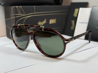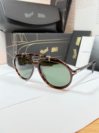 Occhiali da sole Persol modello Senna 0202 S. - Montatura tartarugata. - Lenti verdi. - Design iconico.