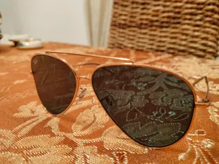 Occhiali da sole Ray-Ban modello Aviator, risalenti agli anni '70. Le lenti sono fotocromatiche e la montatura è in metallo dorato. Occhiali originali made in USA e lenti con incisioni BL a ore 12. Lenti 58mm in ottime condizioni e custodia originale compresa. Prezzo leggermente trattabile - Montatura in metallo color oro. - Lenti fotocromatiche con sfumatura marrone.