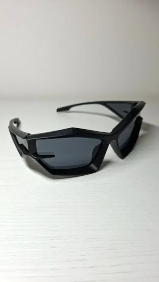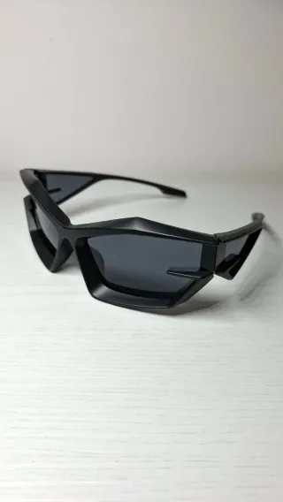 Occhiali da sole con montatura nera e lenti scure. Design moderno e audace. - Montatura in plastica resistente. - Lenti con protezione UV.