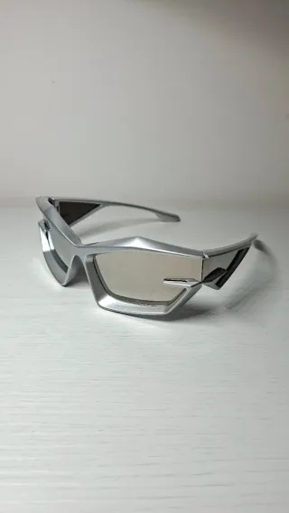Occhiali da sole dal design moderno e accattivante. - Montatura in metallo color argento. - Lenti a specchio. - Stile futuristico.