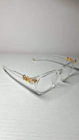 Occhiali con montatura trasparente e dettagli dorati. - Montatura in acetato trasparente. - Dettagli decorativi color oro sulle aste e sul frontale.