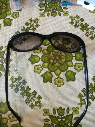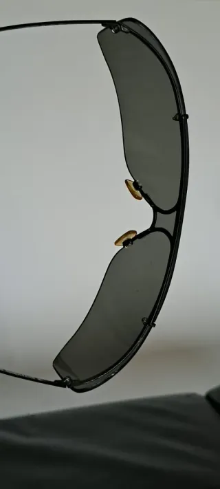 Occhiali da sole Rods Cones con montatura nera. - Montatura in plastica resistente. - Lenti scure per una protezione ottimale. - presentano un graffio millimetrico sulla lente sinistra visibile nell’ultima foto