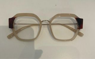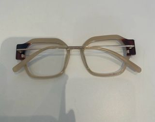 Montatura da vista Kaleos con un design moderno. - Colore beige e marrone. - Include astuccio.