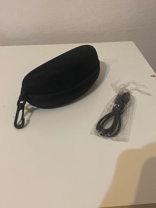 Occhiali da sole con cuffie Bluetooth integrate. Un accessorio pratico per ascoltare musica o effettuare chiamate. - Montatura nera. - Lenti grigie. - caricatore incluso - custodia Luigi da un gancio inclusa - panno pulizia lenti Mai utilizzate vendute nella scatola originale