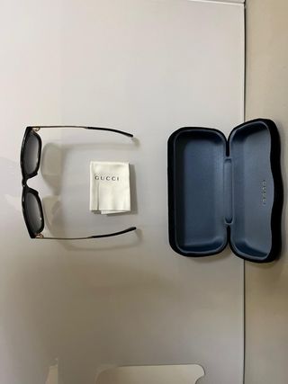 Occhiali da sole da donna Gucci. Colore marrone montatura stretta con porta occhiali originale. Riportano in fondo alle stanghette dei piccoli dettagli di usura come da foto allegata