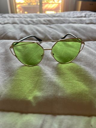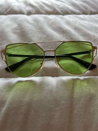 Occhiali da sole a maschera verdi, lenti verde scuro.