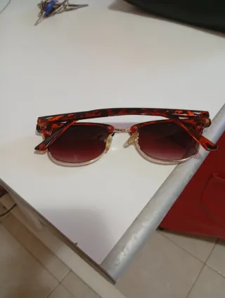 Occhiali da sole con montatura colorata. - Lenti con protezione UV400. - Montatura effetto tartarugato. Senza la loro custodia perché l’ho persa.