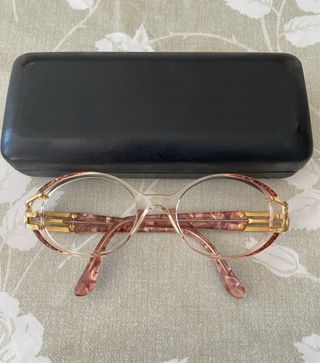 Montatura da vista Roberta Capucci originale, realizzata in Italia. Colore trasparente con riflessi rosati e dettagli dorati. Modello senza lenti - ideale per montare lenti graduate o da sole, oppure da usare come accessorio fashion retrò. Condizioni ottime, nessun difetto visibile. Custodia inclusa (non originale). • Stile: vintage / retrò • Materiale: plastica trasparente con inserti metallici dorati