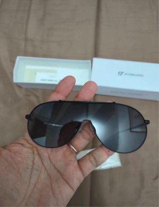 Occhiali da sole in ottimo stato. - Montatura nera elegante. - Lenti blu a specchio, perfette per l'estate. - Accessorio alla moda e versatile.