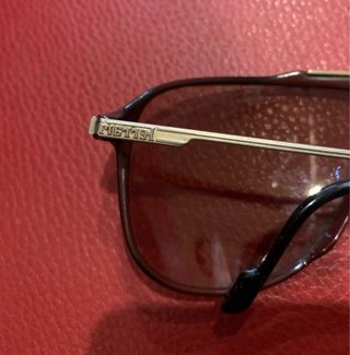 Occhiali da sole stile aviatore, perfetti per aggiungere un tocco di stile al tuo look. - Montatura in metallo color oro e marrone. - Lenti marroni sfumate. - Sono in ottime condizioni.