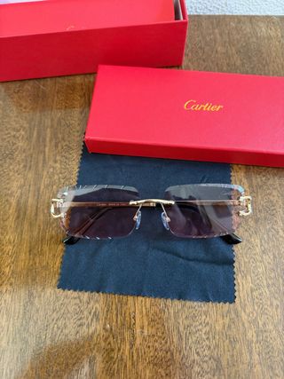 Occhiali da sole stile cartier nuovi con scatola completa. Lente chiara viola rosa. Occhiali perfetti. Unisex