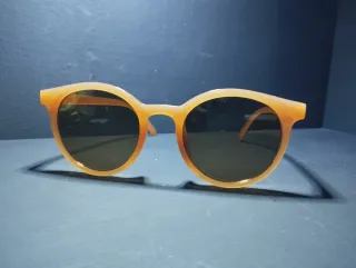 Occhiali da sole vintage con montatura rotonda. - Design ispirato agli anni '90. - Montatura color arancio. - Lenti marroni. - Plastica leggera.
