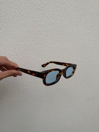 Occhiali da sole con montatura effetto tartarugato e lenti azzurre. - Montatura in acetato. - Lenti con protezione UV. Spedizione rapida
