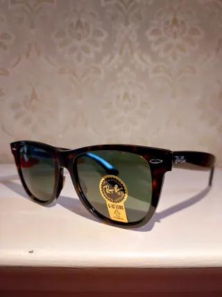Occhiali da sole Ray-Ban con montatura tartarugata e lenti verdi. Nuovi compresi di tutto senza cartellino. - Montatura in acetato. - Lenti G-15.
