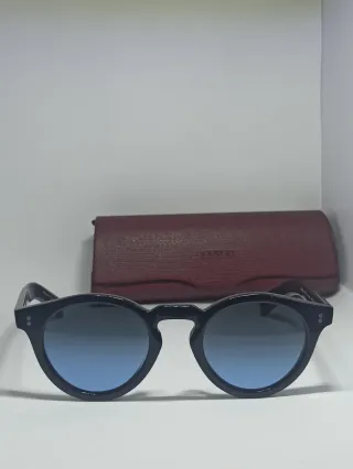 Occhiali da sole con montatura nera e lenti sfumate blu. - Montatura in acetato. - Lenti con protezione UV.