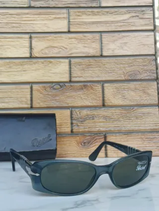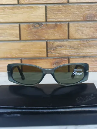 Occhiali da sole vintage Persol con montatura grigia e lenti verdi. - Montatura in acetato. - Lenti con protezione UV.