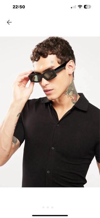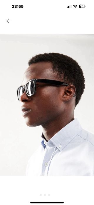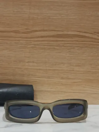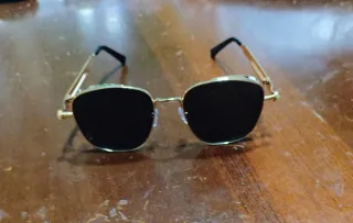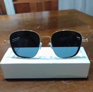 Occhiale da sole glassant ottagonale con lenti da sole grigio scuro e montatura colore oro, nuovo mai indossato, ottima vestibilità e qualità - Montatura senza cornice. - Lenti sfumate. - Ponte nasale regolabile.