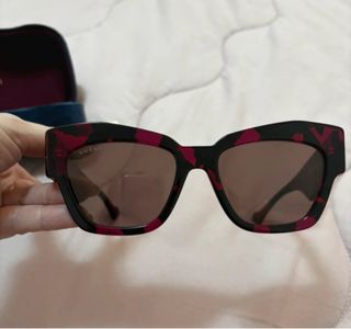 Occhiali da sole Gucci con un design unico. - Montatura nera con dettagli fucsia. - Lenti marroni sfumate. - Logo GUCCI inciso sulle lenti. Occhiali da sole gucci donna doppia g tartarugati rosa e neri completi di tutto come nuovi, originali 💯. Retail 350euro. Modello havana. Lente marrone nylon con scritta gucci impressa. Frontale e asta acetato. Made in italy 🔝 leggermente trattabile. Vedi foto!!! Tutti i dettagli reali. Solo realmente interessati. Con custodia propria blu , sacchetto blu , pezzolina marcata e card autenticita’. Acquisto in negozio fisico verificato concessionario ufficiale.✅