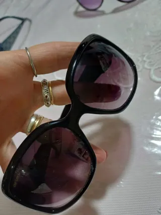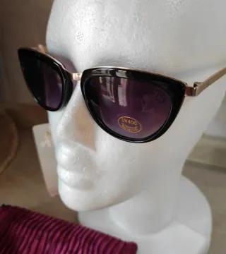 Eleganti occhiali da sole da donna nuovi con sacchetto originale 👍 - Montatura cat-eye. - Lenti sfumate. - Dettagli dorati sulle aste.