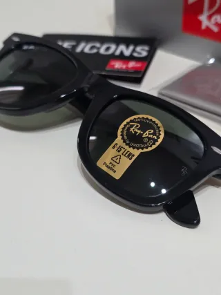 Occhiali da sole Ray-Ban con montatura nera. Nuovi compresi di tutto. - Design iconico. - Lenti scure.