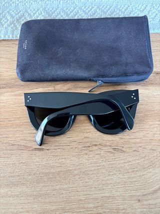 Eleganti occhiali da sole Celine. - Montatura nera. - Design moderno. - Custodia inclusa. Vanno regolate le astine che risultano non allineate