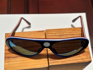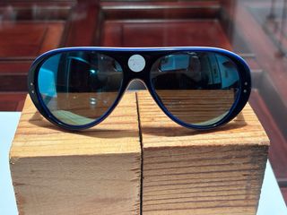 Occhiale da sole vintage anni 90 Lenti con riflesso esterno bluastro Buon condizioni Occhiale piuttosto piccolo in dimensioni Larghezza totale misurata dai punti più esterni cm 13.5 Altezza lente misurata dal centro cm 5