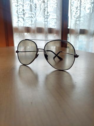 Occhiali da sole indossati una sola volta, in ottime condizioni. - Montatura squadrata. - Lenti color ambra. - Custodia protettiva inclusa.