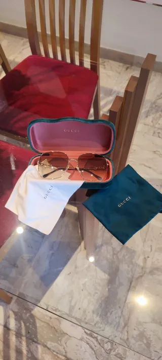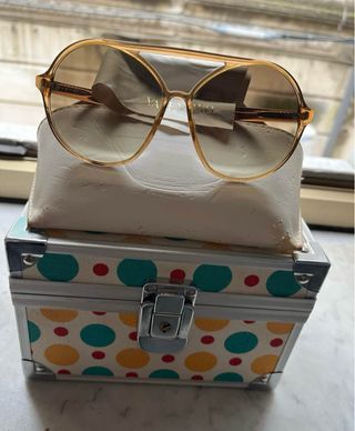 Occhiali da sole originali mai indossati lenti color bronzo e montatura dorata, un vero affare. - Montatura color oro. - Lenti sfumate marroni. - Custodia originale inclusa.