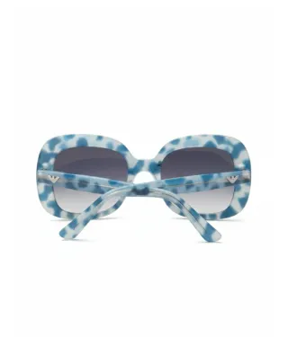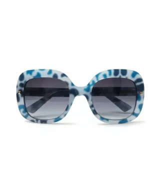 Occhiali da sole con una particolare fantasia. - Montatura squadrata. - Lenti sfumate. - Dettagli dorati sulle aste.