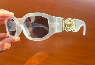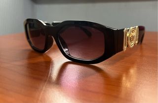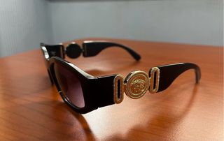 Occhiali da sole unisex nero e oro con Medusa sulle aste, ideali per uomo e donna che vogliono uno stile elegante, fashion e di lusso. Design ispirato allo stile Versace luxury italiano, con montatura nera lucida e dettagli dorati sulle aste che donano un look moderno, sofisticato e streetwear. Lenti con protezione UV, resistenti, leggere e confortevoli, perfette per mare, città, guida, vacanze o ogni occasione alla moda. Perfetti per chi cerca occhiali da sole uomo, donna, unisex, nero oro, con Medusa, occhiali fashion, trendy, di alta qualità e dal fascino iconico. Spedizione veloce e risposta rapida.