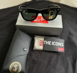 Occhiali da sole Ray-Ban wayfarer 2140 Nuovi - Montatura nero lucido. - Lenti verdi. - Taglia 50mm.