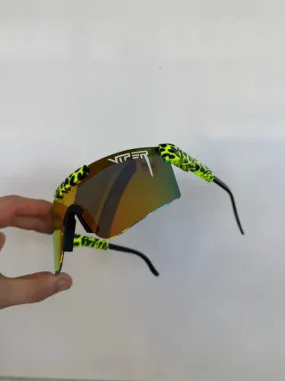 Occhiali da sole con un design audace e accattivante. Fashion style lenti UV Pit Viper - Lenti a specchio con riflessi cangianti. - Montatura con dettagli animalier fluo. - Stile unico e di tendenza.