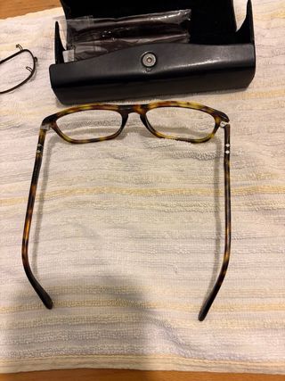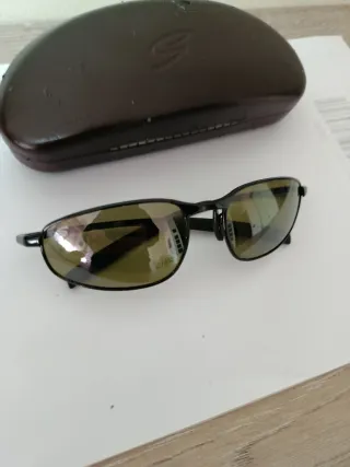 Serengeti montatura occhiali uomo. la montatura è in acetato di colore marrone, di forma rettangolare. sono in perfette condizioni, tranne un piccolo difetto sul fondo interno dell' asta destra non visibile quando indossato. come si vede da foto.