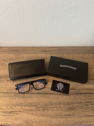 Occhiali da vista Chrome Hearts. - Montatura nera. - Dettagli con croci. - Include custodia e scatola.