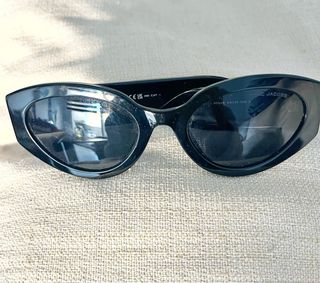 Fodero per occhiali da sole del marchio Marc Jacobs. Colore nero. Design curvo.