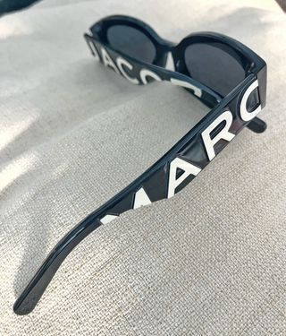 Eleganti occhiali da sole del marchio Marc Jacobs. Nuovi - Montatura con dettagli dorati. - Lenti nere. - Include custodia protettiva con il logo del marchio.