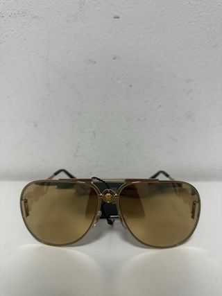 Versace Pilot Medusa ‘95 Sunglasses - Pilot model - Gold colour, Medusa plate detail, yellow lenses, nose pads, straight temples and curved tip temples. - These glasses come with a protective case - DS Conditions, never used with a brand tag - Retail price 385€