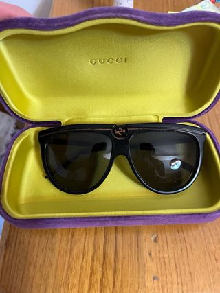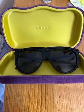 Occhiali da sole da donna Gucci. Colore marrone montatura stretta con porta occhiali originale. Riportano in fondo alle stanghette dei piccoli dettagli di usura come da foto allegata