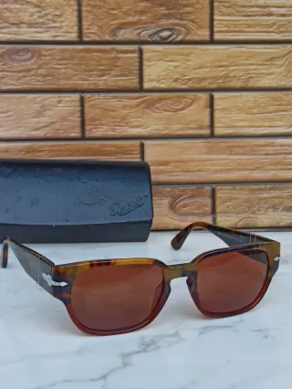 Occhiali da sole Persol vintage con montatura tartarugata e lenti colorate. - Montatura in acetato. - Lenti con tonalità marrone ambrato. - Design iconico Persol. Come da foto