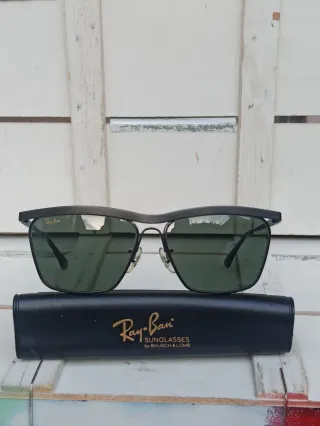 Occhiali da sole Ray-Ban vintage con montatura nera e lenti verdi. - Montatura in metallo. - Lenti con protezione UV. - Custodia originale inclusa.