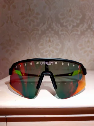 Occhiali da sole Oakley con lenti a specchio. Nuovi compresi di tutto senza cartellino. - Montatura nera. - Lenti con sfumature multicolore.